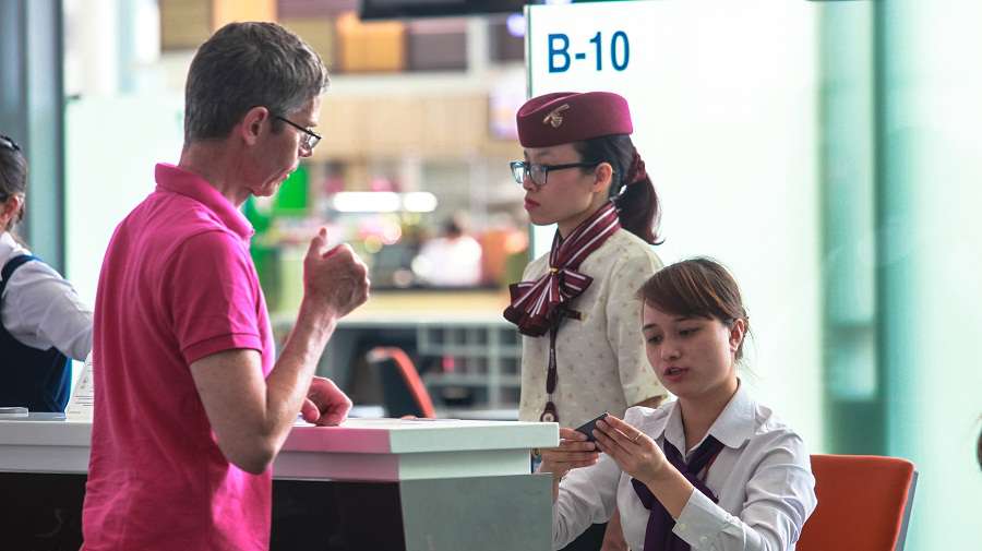Hành khách xuất trình vé máy bay và các giấy tờ tùy thân liên quan để làm thủ tục hàng không tại các quầy check-in hoặc tự làm thủ tục cho mình tại các Kios check-in tự động.